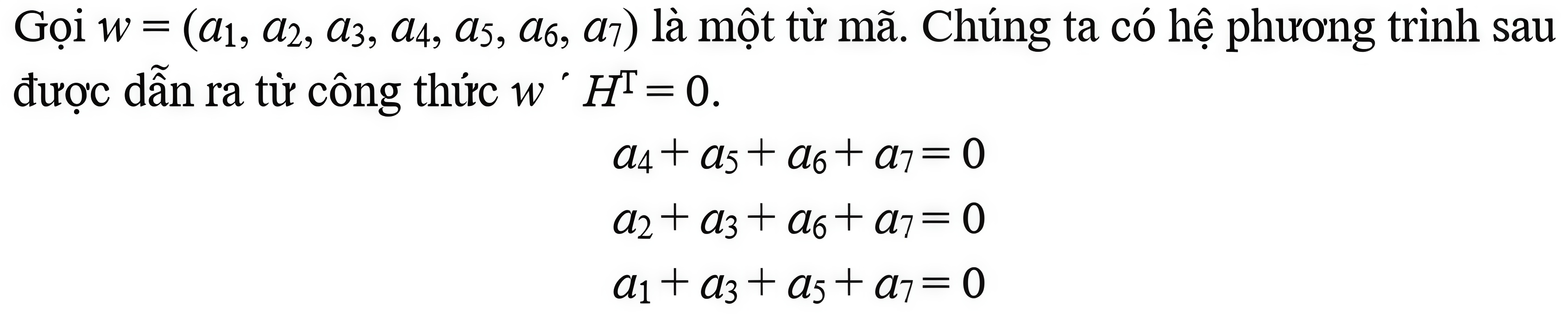 Để cho thuận tiện, nếu không gây nhầm lẫn, trong các phần sau có thể sử dụng ký hiệu ‘+’ và ‘.’ thông thường thay cho các ký hiệu Å bit và Ä bit, và được hiểu tùy theo ngữ cảnh. Trong giáo trình này, ta chỉ xét các mã nhị phân, vì vậy hầu hết các khái niệm và kết quả chỉ trình bày cho các mã nhị phân trên trường F2. Các khái niệm và kết quả cho các trường GF(q) được mở rộng một cách tương tự.